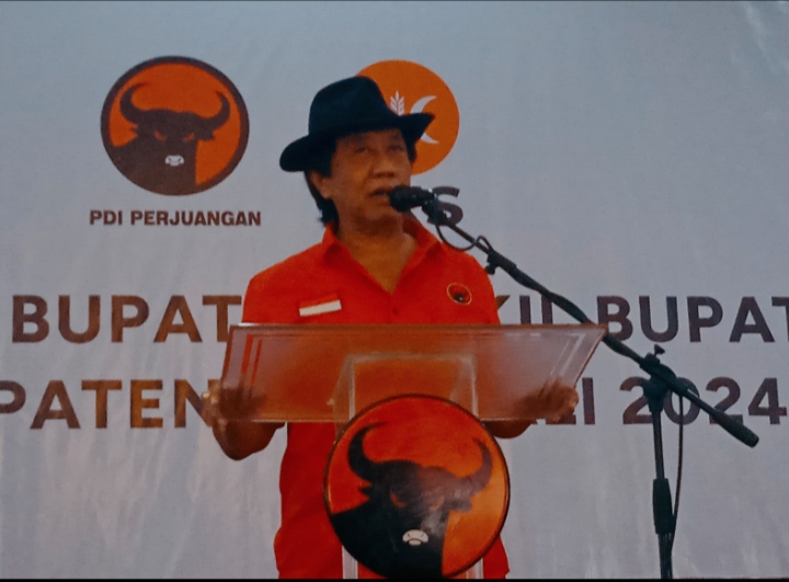 Di Gedung Marhaen DPC PDIP Boyolali, Seno Gede pun memberikan sambutan sebelum Paslon yang diusung PDIP, PKS serta didukung PPP itu jalan kaki ke KPU Boyolali.
