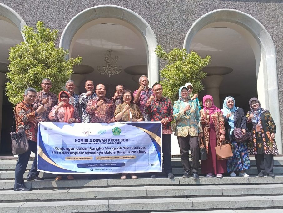 Fokus Jateng-SURAKARTA,– Dewan Profesor (DP) Universitas Sebelas Maret (UNS) Surakarta dipimpin Ketua Dewan Profesor (DP) Prof. Drs. Suranto Tjiptowibisono, M.Sc., Ph.D yang dalam hal ini Komisi II Dewan Profesor (DP) UNS melakukan kunjungan kerja dan pemanfaatan kepakaran para Guru Besar dalam menggali nilai-nilai etika dari Ngayogjakarta Hadiningrat untuk dapat diimplementasikan Perguruan Tinggi dan menggali nilai-nilai ke Tamansiswaan ke Universitas Gadjah Mada dan Universitas Sarjanawiyata Taman Siswa Yogjakarta, Kamis, 12 September 2024.