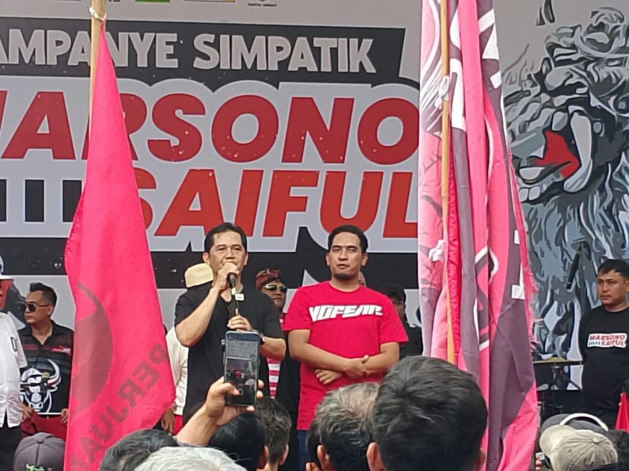 ” Pemenangnya tidak ada yang lain dan tidak ada kata bukan kecuali Marsono-Saiful,” tambah Seno.