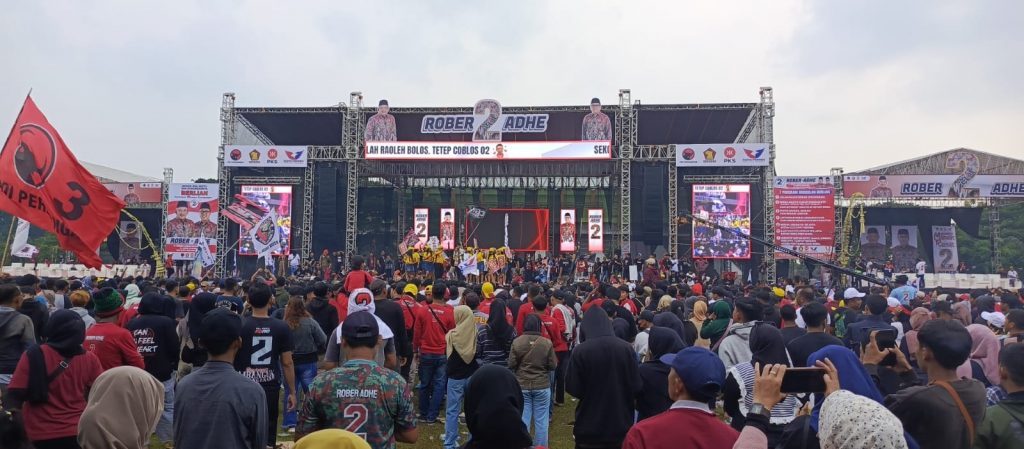 FOKUSJATENG.COM, KARANGANYAR – Ribuan massa antusias menghadiri kampanye akbar pasangan calon bupati dan wakil bupati Karanganyar nomor urut 2, Adhe Eliana dan Rober Christanto (Berlian) yang digelar di Stadion 45 Karanganyar pada Sabtu (23/11)