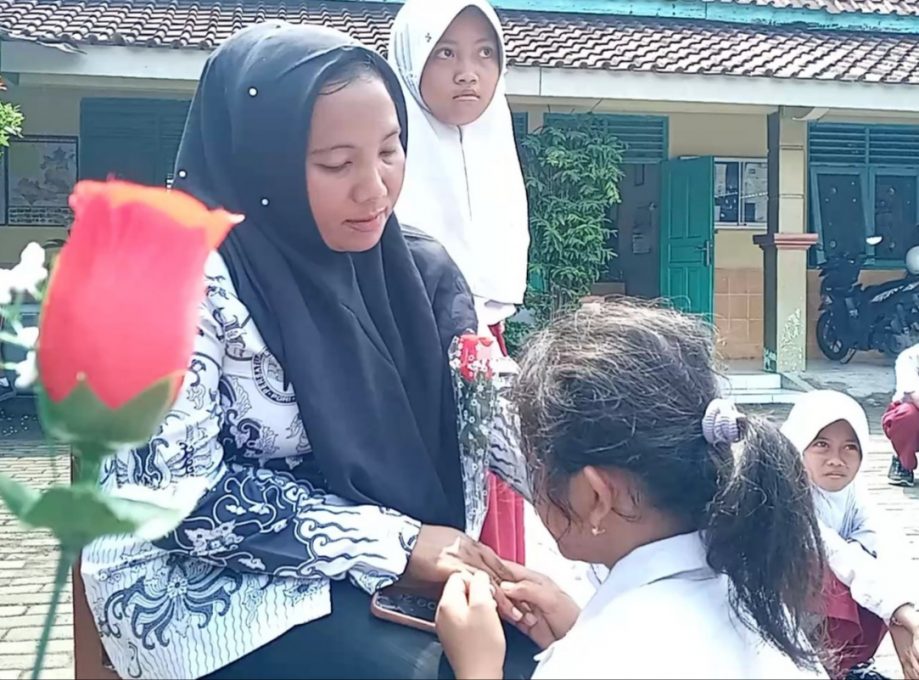 Kepala Sekolah SDN 2 Nepen, Sri Rahayu mengaku cukup terharu dengan apresiasi spontan para siswa, selepas upacara yang para petugas upacaranya dari para guru.