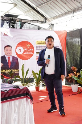 Dengan tegas dan penuh semangat, Adik Sasongko menekankan kepada seluruh kader dan masyarakat hadirin untuk semakin mempererat rasa cinta terhadap tanah air melalui kesadaran akan 4 Pilar Kebangsaan. Dorongan untuk lebih memahami dan menjunjung tinggi nilai-nilai kebangsaan ini diharapkan mampu mempererat jalinan persaudaraan di tengah-tengah masyarakat daerah pemilihan Jawa Tengah V.