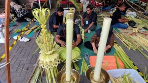 Pembuatan dekorasi kembar mayang dan penjor ini memang membutuhkan ketelatenan, kesabaran dan kreasi tinggi.