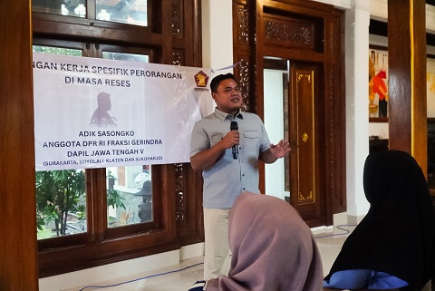 FOKUSJATENG-BOYOLALI-Anggota DPR RI dari Komisi XIII, Adik Sasongko, melakukan kunjungan kerja spesifik perorangan untuk mensosialisasikan perlindungan dan penegakan hak asasi manusia di kalangan milenial di Kabupaten Boyolali. Dalam acara yang berlangsung di Joglo Desa Sindon, Adik Sasongko memaparkan pentingnya perlindungan hak asasi manusia dan peran milenial dalam mewujudkannya.