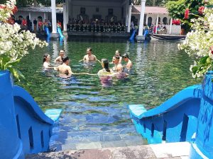 Mas dan mbak Boyolali keluar kolam saat pembukaan Gebyar padusan di Umbul Ngabean,komplek wisata umbul Tirto Marto, Pengging, Kecamatan Banyudono (yull/Fokusjateng.com)