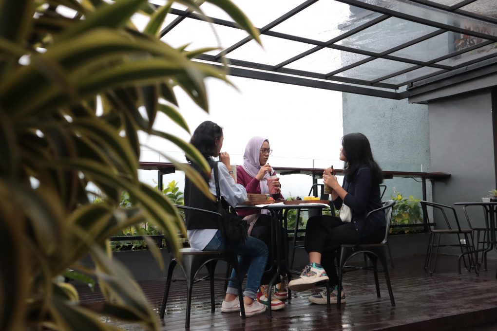 BUKA PUASA - Pengunjung menikmati suasana senja di Rooftop AHotel Max One Loji Kridanggo Boyolali. (doc/Fokusjateng.com)
