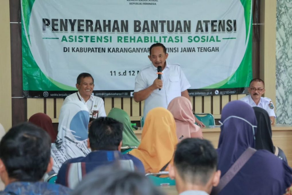 FOKUSJATENG.COM, KARANGANYAR – Pemerintah Kabupaten (Pemkab) Karanganyar melalui Dinas Sosial setempat bekerjasama dengan Kementerian Sosial Republik Indonesia (Kemensos RI), menyalurkan bantuan Asistensi Rehabilitasi Sosial (Atensi) bagi penyandang disabilitas dan lanjut usia di wilayah Kabupaten Karanganyar, Rabu (12/3/2025), di Aula Lawu Dinas Sosial (Dinsos) Kabupaten Karanganyar.