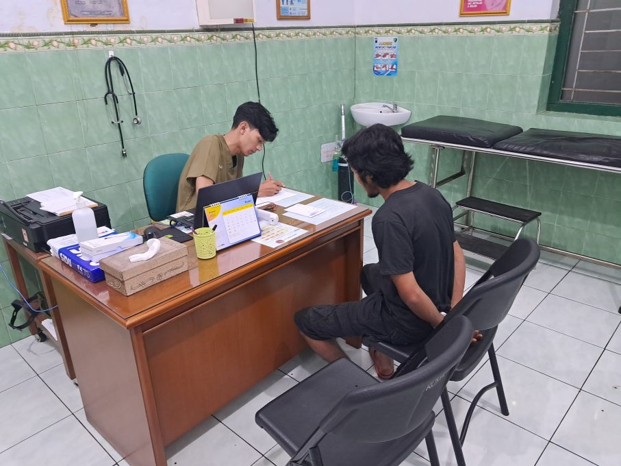 Rangga Dewangga tersangka kasus penipuan penggelapan saat diperiksa kesehatannya sebelum di tahan. (ist/Fokusjateng.com)