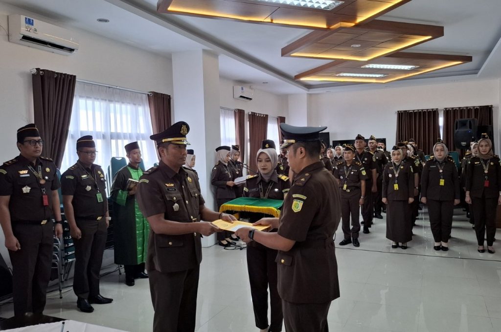 Fokus Jateng- BOYOLALI,- Kepala Kejaksaan Negeri (Kajari) Boyolali Tri Anggoro Mukti memimpin pelantikan sekaligus pengambilan sumpah jabatan Kepala Seksi Perdata dan Tata Usaha Negara dan Kepala Sub Seksi Perdata dan Tata Usaha Negara lama dengan yang baru di Aula Kantor Kejaksaan Negeri Boyolali pada Jumat 11 April 2025.