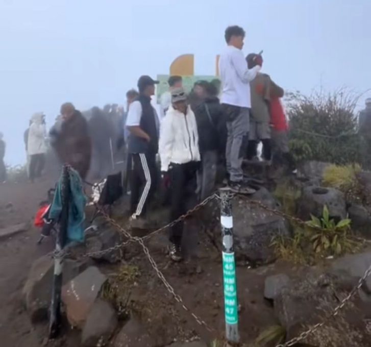 Tangkapan layar pendaki menginjak-injak situs watu kenteng Gunung Merbabu (doc/Fokusjateng.com)