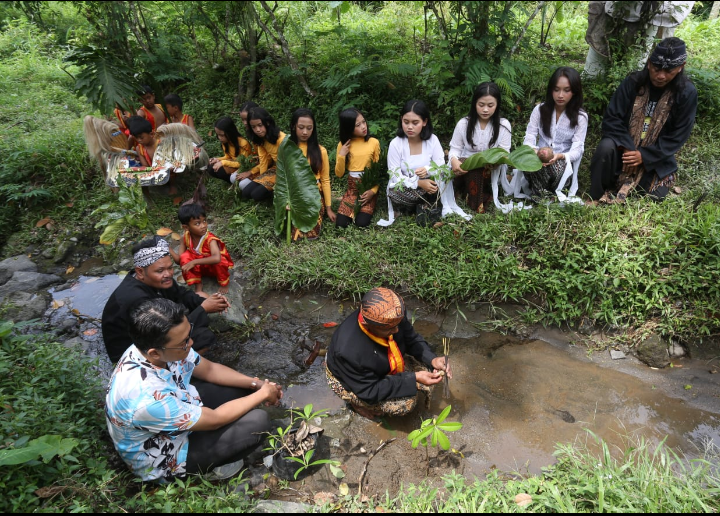 Puluhan penari terlibat dalam penanaman pohon pengikat air. Kegiatan digelar di sejumlah mata air kawasan lereng Merapi.