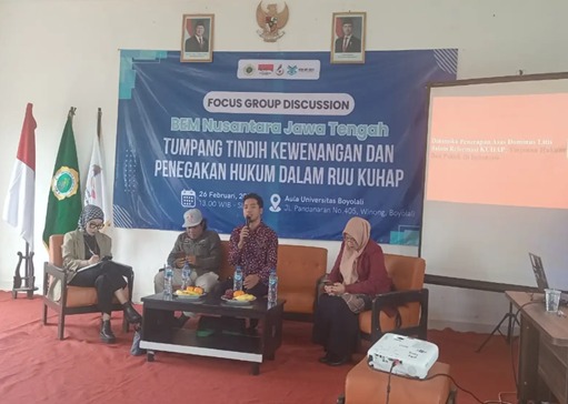 BOYOLALI– Guna memperkuat pemahaman mahasiswa terhadap dinamika reformasi hukum di Indonesia, Badan Eksekutif Mahasiswa Nusantara (BEMNUS) Koordinator Daerah Jawa Tengah menggelar Focus Group Discussion (FGD) bertema “Tumpang Tindih Kewenangan dan Penegakan Hukum dalam RUU KUHAP”. Kegiatan ini diselenggarakan di Aula Gedung Utama Universitas Boyolali.