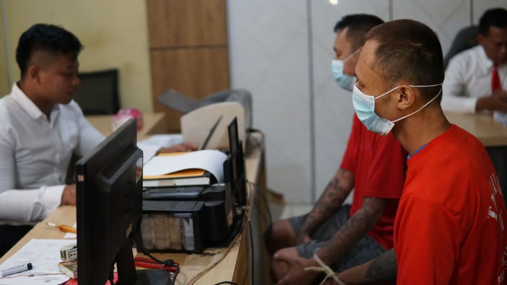 Kedua pelaku menjalani penyidikan lebih lanjut di Ruang Satresnarkoba Polres Sragen (an/Fokusjateng.com)