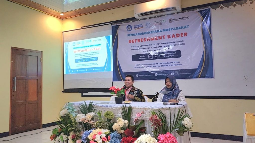 FOKUSJATANG.COM, KARANGANYAR – Semangat kolaborasi membara di Hotel Permata Sari Karanganyar pada Kamis, 15 Mei 2025. Sebanyak 30 kader kesehatan mengikuti kegiatan “Refreshment Kader” yang digagas oleh Mentari Sehat Indonesia (MSI Karanganyar) bekerja sama dengan Riset Group Pembangunan dan Perubahan Sosial FISIP UNS. Kegiatan ini menjadi wujud nyata pengabdian kepada masyarakat dalam upaya mencapai target Indonesia bebas TBC pada tahun 2050.