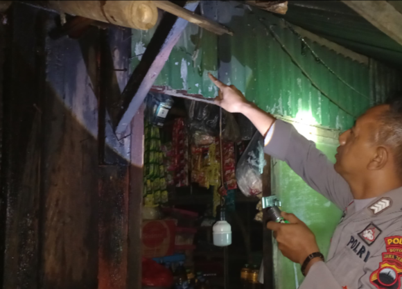 Tak berselang lama, pedagang itu dikagetkan dengan munculnya api dari bagian atas kios kebutuhan dapur itu. Spontan pedagang berteriak untuk memberitahu warga lain.