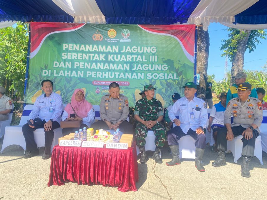 FOKUSJATENG.COM, KARANGANYAR – Polres Karanganyar sukses menggelar kegiatan Tanam Raya Jagung Serentak Kuartal III pada Rabu, 9 Juli 2025. Inisiatif ini merupakan bagian dari upaya mendukung target swasembada pangan nasional pada tahun 2025. Kegiatan utama dilaksanakan di Dukuh Gulunan, Desa Kaliboto, Kecamatan Mojogedang, dan dipimpin langsung oleh Kapolres Karanganyar AKBP Dr. Hadi Kristanto, S.I.K., M.M.