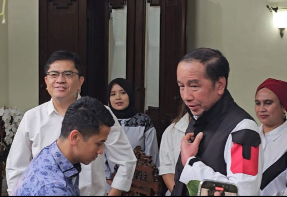 Fokus jateng-SOLO – Mantan Presiden Joko Widodo mendapatkan jaket Partai Solidaritas Indonesia (PSI) saat jajaran pengurus Dewan Pimpinan Pusat (DPP) partai tersebut menyambangi kediamannya di Kelurahan Sumber, Kecamatan Banjarsari, Solo, Jawa Tengah, Kamis sore, 17 Juli 2025. Jokowi pun memakai jaket itu seusai diserahkan oleh Pelaksana Tugas (Plt) Ketua Umum PSI, Andy Budiman.