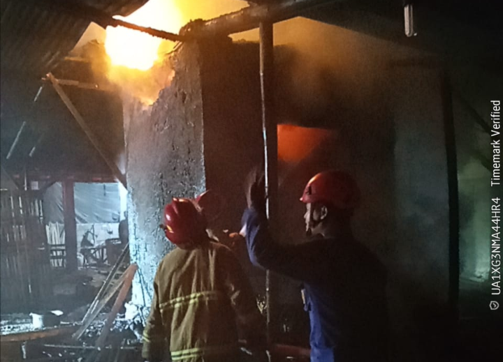 Didukung dua unit armada Damkar, Polisi, TNI serta warga sekitar berjibaku berupaya menjinakkan si jago merah, akhirnya api berhasil dipadamkan sekitar pukul 00.30 WIB.