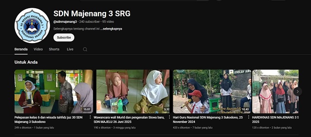 Pemanfaatan Youtube ini memungkinkan guru merekam dan mengunggah video kegiatan siswa, materi pembelajaran, serta berbagai aktivitas sekolah dalam bentuk audiovisual yang menarik dan mudah diakses. Dengan menggunakan aplikasi editing seperti Canva dan CapCut, video yang diunggah tidak hanya informatif tapi juga kreatif, lengkap dengan logo sekolah dan informasi penting lainnya.