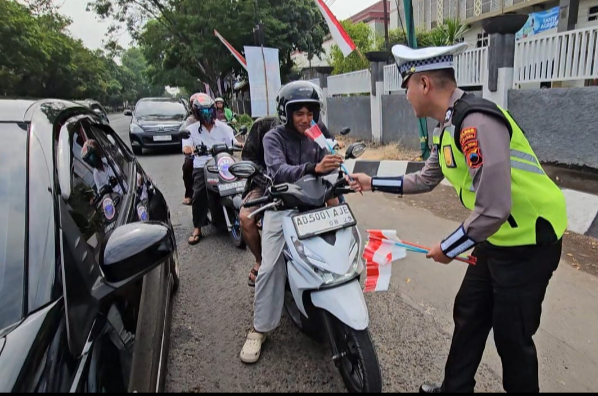 Selain membagikan bendera, Satlantas juga menyisipkan pesan edukatif seputar keselamatan berlalu lintas dan Kamtibmas. Kukuh mengingatkan pentingnya menjadi “polisi bagi diri sendiri” di jalan raya.