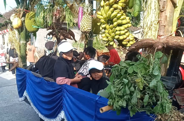 Fokus Jateng -BOYOLALI- Puncak kegiatan Agustusan Ratusan warga Dukuh Ngares, Desa Kadireso, Kecamatan Teras, Boyolali menutup bulan Agustus 2025 dengan karnaval budaya keliling kampung, Minggu 31 Agustus 2025. Berbagai kostum unik dikenakan oleh peserta karnaval, bahkan dua gunungan makanan ikut dikirab dan diperebutkan warga.