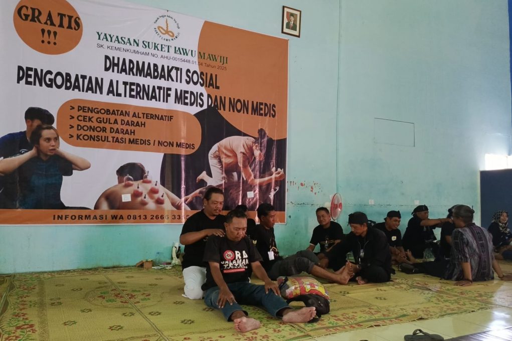 FOKUSJATENG.COM, KARANGANYAR – Yayasan Suket Lawu Mawiji kembali menunjukkan komitmennya di bidang sosial dengan menggelar bakti sosial pengobatan alternatif dan layanan kesehatan gratis. Bertempat di Gedung Olahraga (GOR) Kelurahan Cangakan, Kecamatan Karanganyar, pada Minggu (12/10/2025), acara ini berhasil menarik antusiasme warga yang ingin mendapatkan pelayanan kesehatan secara cuma-cuma.