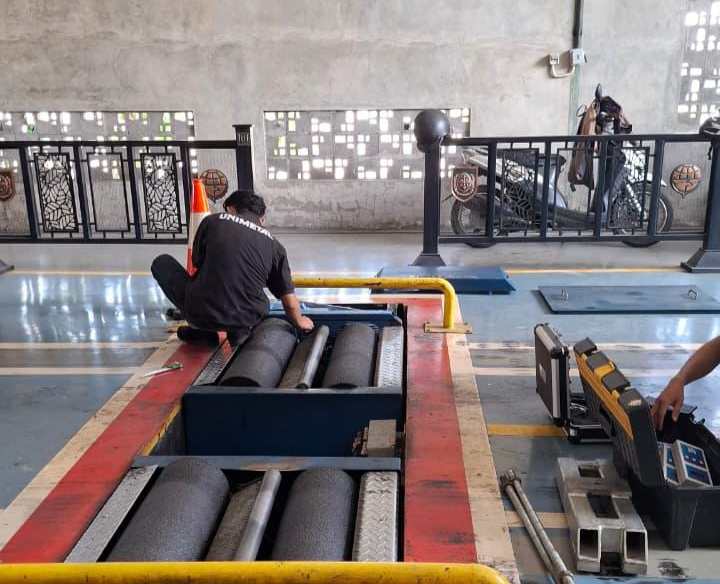 Pengujian dilakukan untuk memastikan seluruh alat uji kendaraan akurat dalam pengujian emisi gas buang, tingkat suara, rem, lampu utama, serta parameter teknis lainnya.