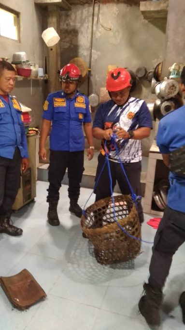 “Kedalaman sumur kurang lebih 20 meter. Kami menggunakan teknik khusus dengan keranjang dan tali senar untuk menjangkau kucing dengan aman,” jelas Ari Mbunjun.