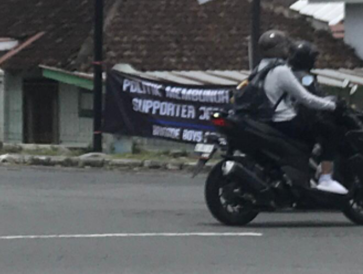 Salah satu spanduk bertuliskan “Persebi bukan alat politik”, spanduk lain juga bertuliskan “politik membunuh mimpi, suporter jadi saksi,”.