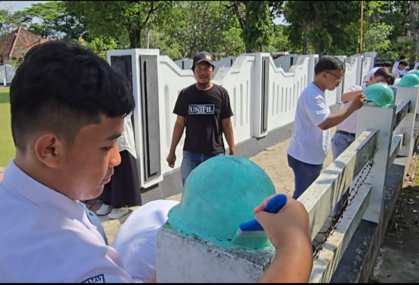 Selain mengecat helm, para siswa juga bahu membahu bersama guru membersihkan area makam dari sampah dan dedaunan kering. Kegiatan dilanjutkan dengan doa bersama, pengalungan bunga di sejumlah makam pejuang, dan diakhiri dengan tabur bunga sebagai bentuk penghormatan.
