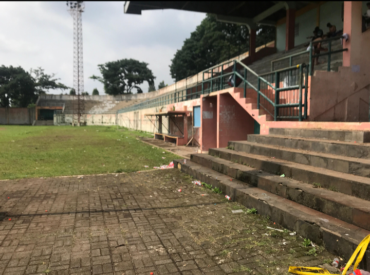 Selain berbau Pesing, dilokasi itu banyak berserakan besi scaffolding bekas pembangunan yang berserak begitu saja di lorong ruang ganti pemain. Sementara di tribun stadion, terlihat sudah dipenuhi dengan lumut. Papan skor pertandingan juga sudah rusak. Rumput stadion pun gondrong akibat jarang dipangkas.