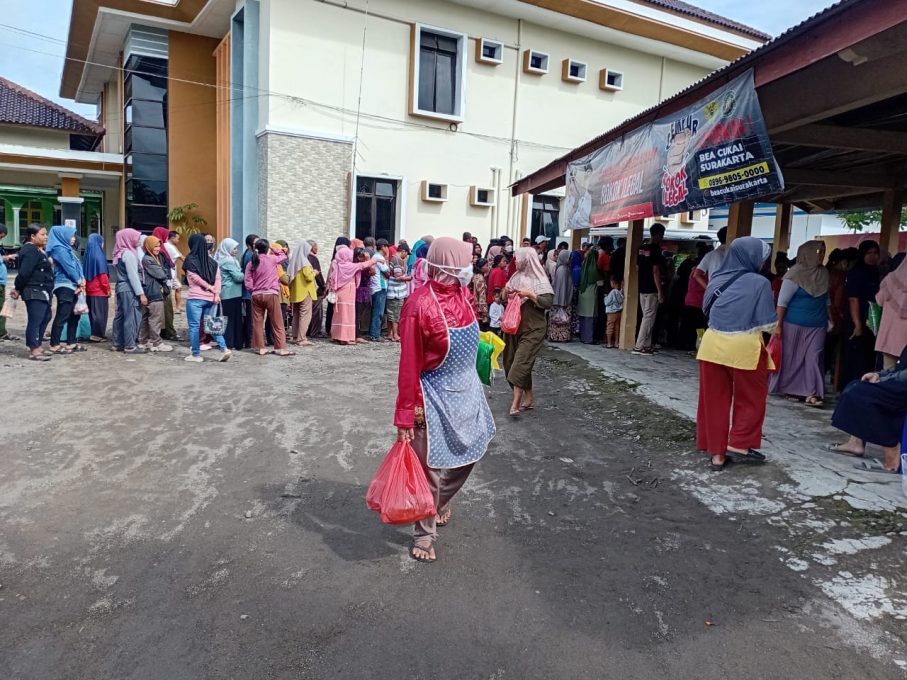 FOKUSJATENG.COM, KARANGANYAR – Halaman Kantor Kecamatan Mojogedang mendadak ramai pada Jumat (27/2) pagi. Ratusan warga sudah terlihat mengantre bahkan setengah jam sebelum acara dimulai. Mereka berbondong-bondong memadati gelaran Gerakan Pangan Murah (GPM) yang diinisiasi oleh Dispertan PP Kabupaten Karanganyar.