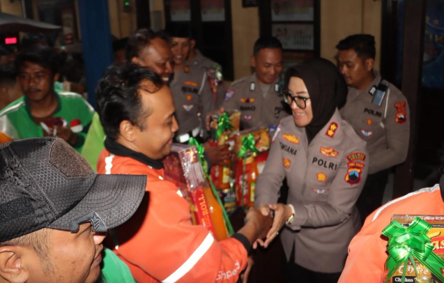 Kapolres berharap bingkisan tersebut dapat sedikit membantu dan membawa kebahagiaan bagi para driver ojol dalam menyambut Hari Raya Idul Fitri.