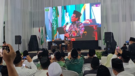 FOKUSJATENG.COM-SRAGEN-Mantan Menko Polhukam Mahfud MD mengisi acara di Pondok Pesantren (Ponpes) Walisongo Sragen, Sabtu 11 April 2026. Kunjungan Mahfud ke Sragen ini dalam rangka kegiatan menjelan Muktamar NU. Dia menyampaikan kriteria pemimpin masa depan organisasi Islam terbesar di Indonesia, yakni NU.