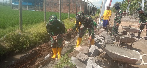 ”Sebagai TNI soal ilmu perang, bela diri tentu sudah saya kuasai, kini bertambah lagi ilmu yang harus saya pelajari saat bertugas di TMMD, yakni memasang batu pondasi untuk talud”, ungkap Sertu Nurdin. (*)