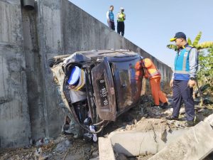Gara-gara Sopir Ngantuk, Minibus Terjun Bebas dari Jalan Tol