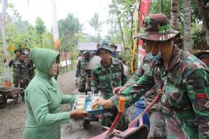 Persit Kodim Sragen Buatkan Bubur Sumsum Khusus untuk Pekerja TMMD
