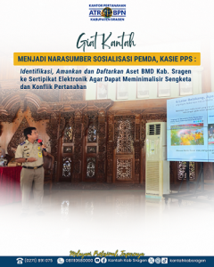 Menjadi Narasumber Sosialisasi Pemda, Kasie PPS: Identifikasi, Amankan Dan Daftarkan Aset Bmd Kab. Sragen Ke Sertipikat Elektronik Agar Dapat Meminimalisir Sengketa Dan Konflik Pertanahan