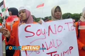 FOKUS JATENG – SRAGEN – Aksi massa menolak pernyataan Presiden Amerika Serikat Donald Trump di Sragen mendapat pengawalan ketat aparat kepolisian Jumat 15 Desember 2017.